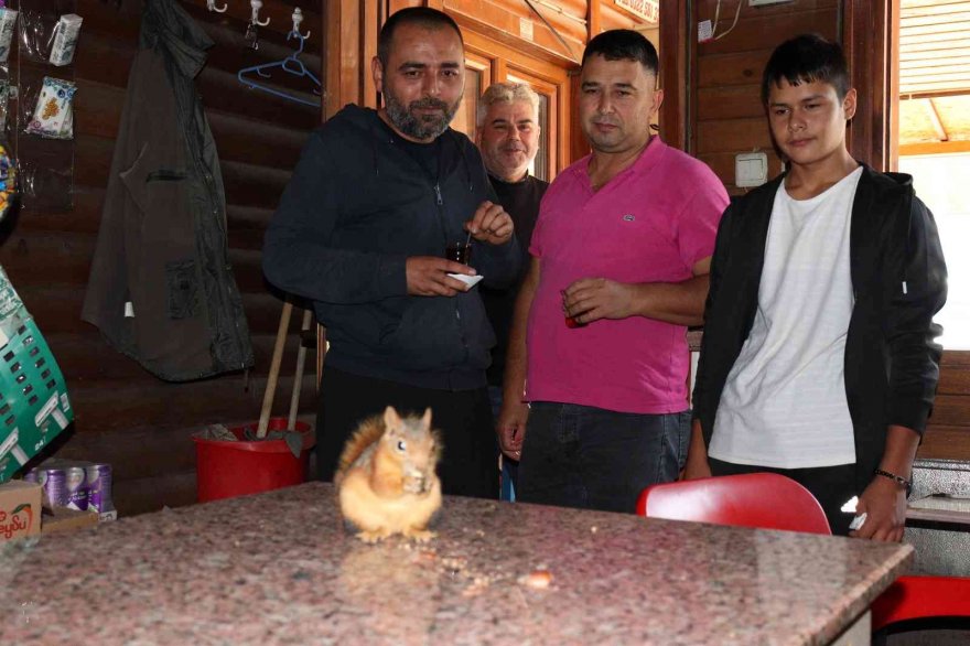 "Boncuk" sincap çay ocağının maskotu oldu