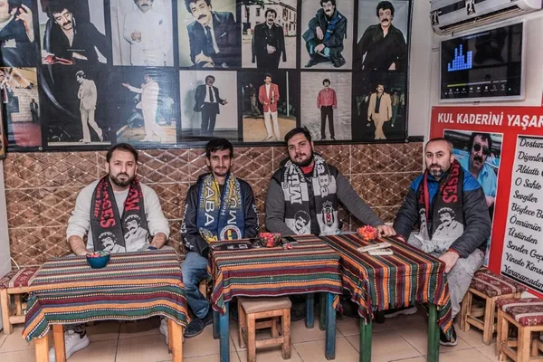 Adı Müslüm Baba Çay Evi... Logosunda Gürses fotoğrafıyla, bu yazı yer alıyor. Bu küçücük mekan İstanbul'un, hatta Türkiye'nin dört bir yanından gelen Müslümcülerin buluşma noktası.