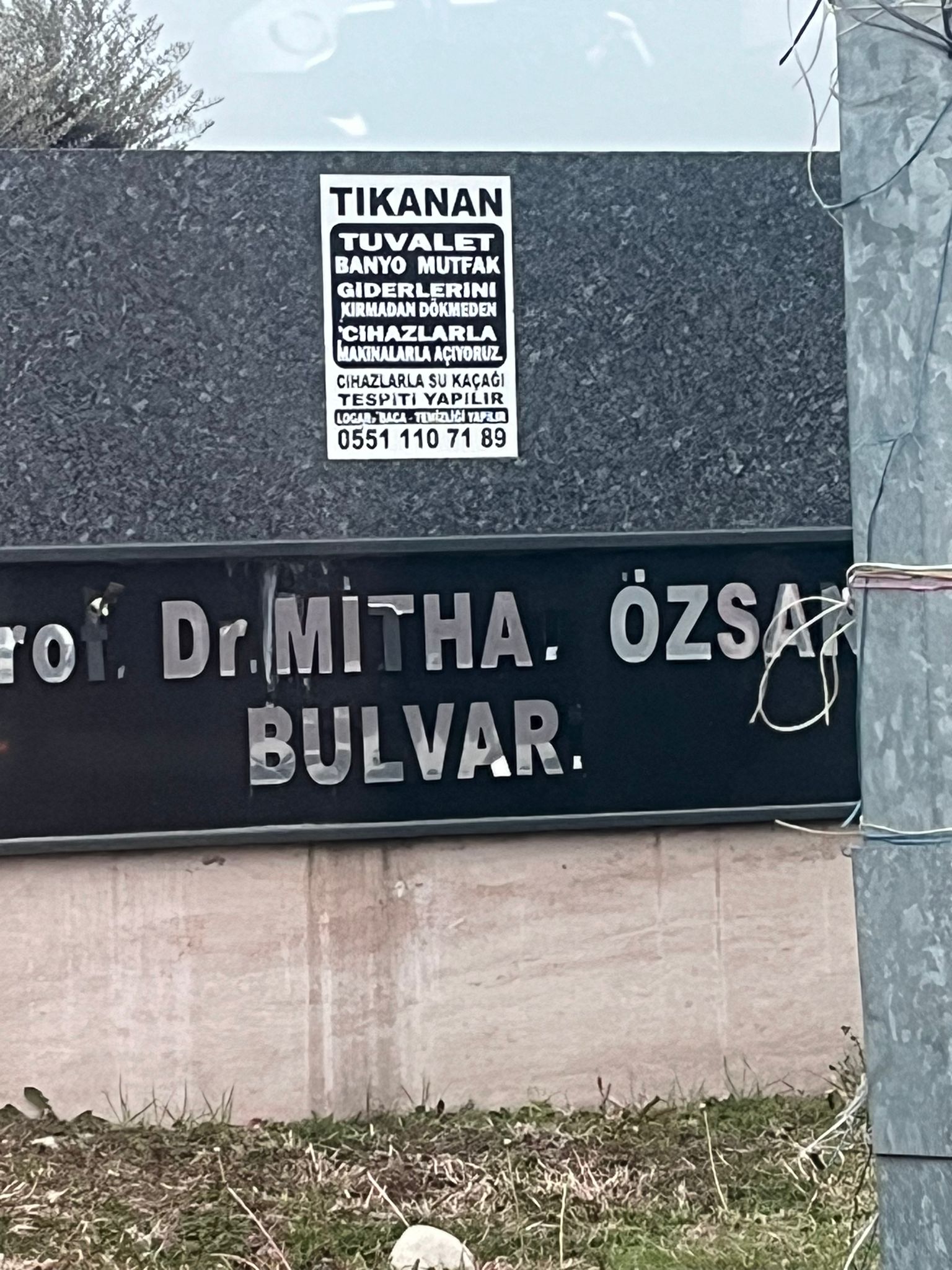 Çukurova Üniversitesi'ne giden bulvara ismi verilen Prof. Mithat Özsan anısına yapılan, mermer kaide üzerine saygısızca bir afiş yapıştırıldı. Afişin üzerinde;