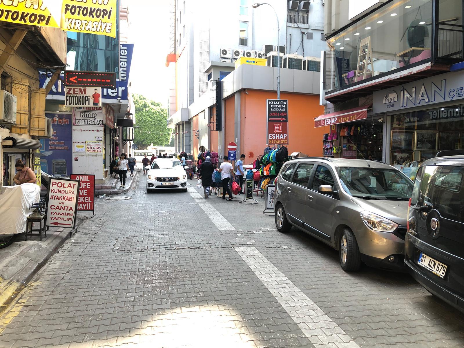 Binlerce Adanalının okul ihtiyaçları için akın ettiği sokakta bazı esnafın yolu iş yeri gibi kullanmasına isyan eden vatandaşlar belediye zabıta ekiplerinin duruma müdahale etmesini bekliyor.
