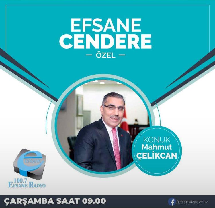 Yüreğir Belediyesi eski Başkanı Mahmut Çelikcan 18 Eylül 2019 Saat 09:00'da Efsane Radyo'da (FM 100.7) Efsane Cendere Özel programına katılacak.
