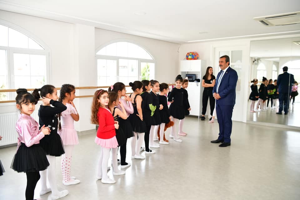 Başkan Soner Çetin, belediyenin yaptığı çalışmalar yanında özel kurumların verdiği eğitimlerin de büyük önem taşıdığını kaydetti. Çetin, “Burada çocuklarımız ve genç kızlarımız bale eğitimi alıyor.