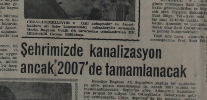 Aynı tarihli gazetelerde şu haber vardı: “şehrimize kanalizasyon ancak 2007’de tamamlanacak.