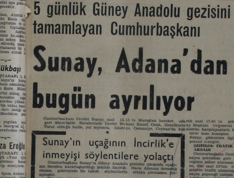 (*) 9 Ocak 1967 Yeni Adana Gazetesi
