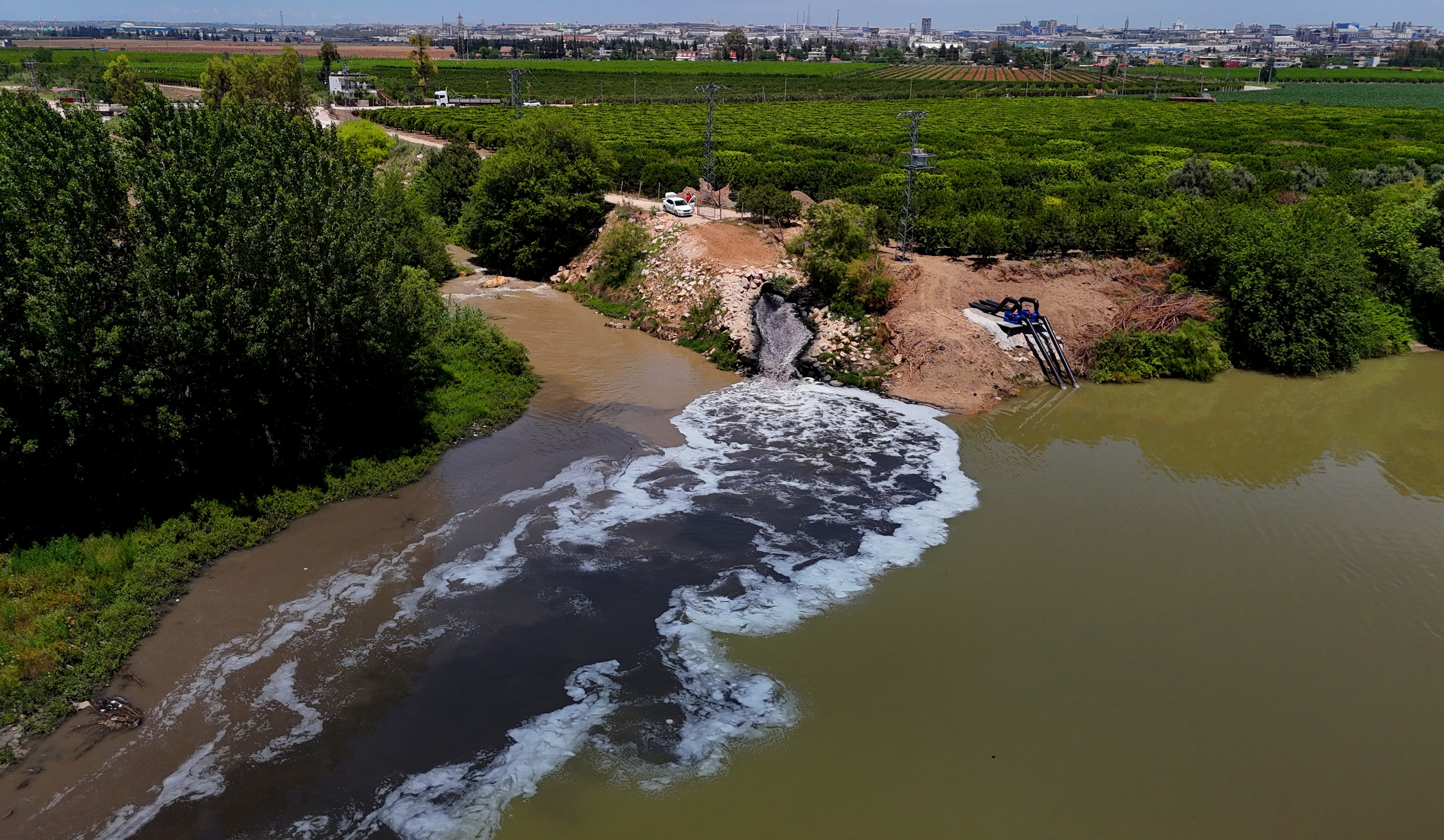 Ceyhan Nehri kirlilikten köpürdü