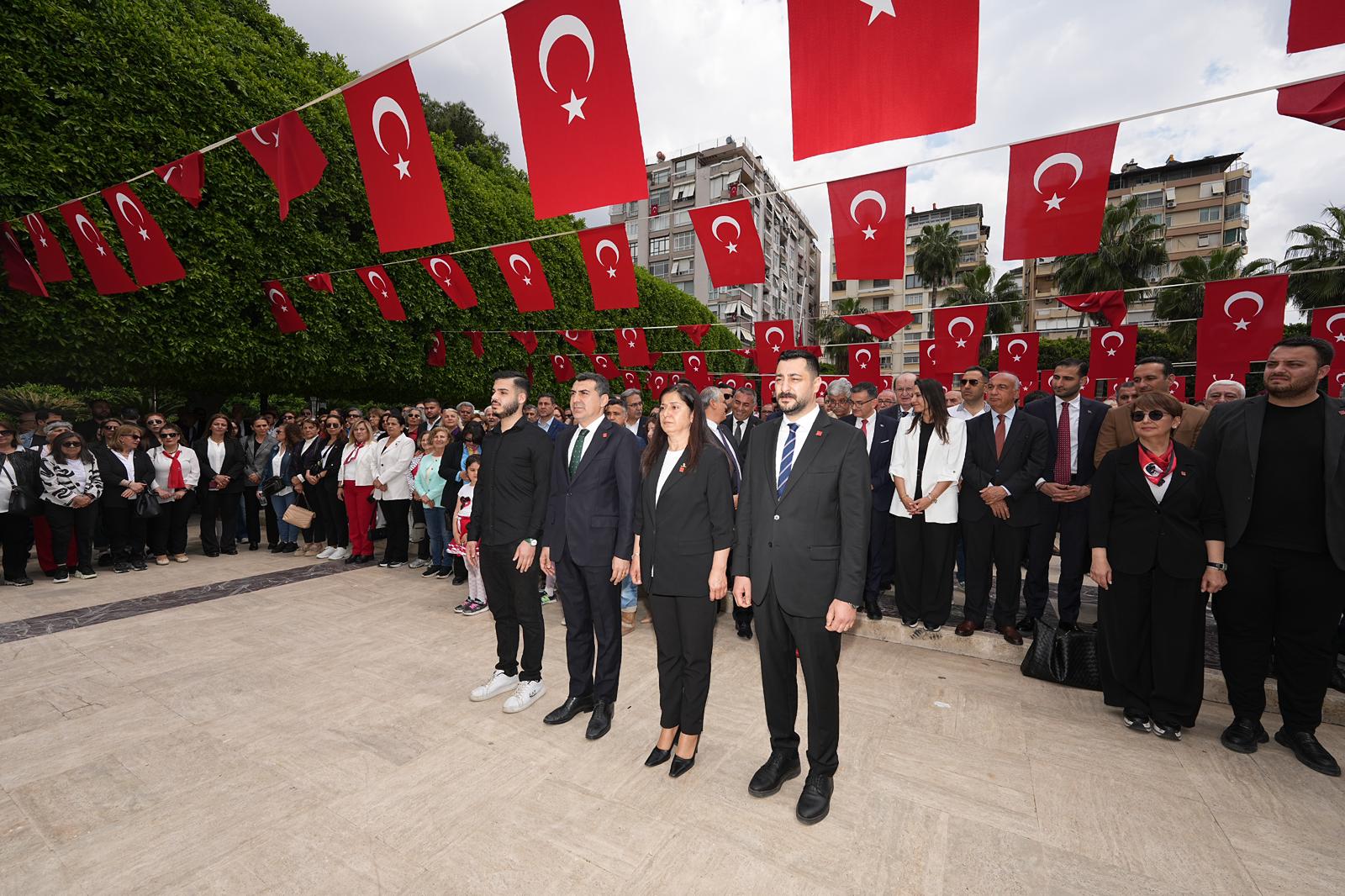 CHP Adana İl Başkanlığı, 23 Nisan kapsamında Atatürk Parkı’nda çelenk sundu, ardından İl Milli Eğitim Müdürlüğü’ne kadar sessiz yürüyüş gerçekleştirdi.