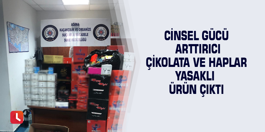 Adana'da geçtiğimiz aylarda yapılan bir operasyonda ele geçirilen cinsel gücü arttırıcı bin 380 adet çikolata, 6 bin 360 kutu içecek, 3 bin 70 adet hap ve spreyin Sağlık Bakanlığı ile Tarım ve Orman Bakanlığı tarafından yasaklı ürün listesinde olduğu ortaya çıktı.