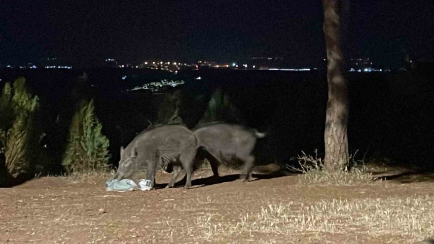Çukurova Üniversitesi yerleşkesine akşam vakti gelip çöp karıştıran domuzlar öğrencileri korkuttu.