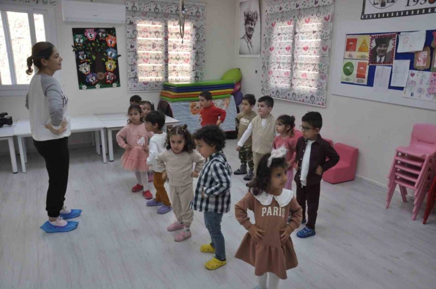 Deprem öncesi Milli Eğitim Bakanlığı'nın hazırladığı müfredata uygun olarak verilen derslerin yerine, bugünlerde esnek bir program uygulanarak, eğlence ile oyun terapilerini merkeze alarak çocukların rutine dönmeleri hedefleniyor. Çukurova Belediyesi'nin tüm kreşlerinde uygulanan yeni eğitim programıyla ilgili bilgi veren okul öncesi ve çocuk gelişimi öğretmeni Gülşen Ayan, çocuklarda gözle görülür bir tedirginlik halinin olduğunu belirterek tesisler müdürlüğü psikologlarının da desteğini alarak hazırladıkları çalışma programıyla rutin hayatlarına dönmeleri için çabaladıklarını ifade etti.