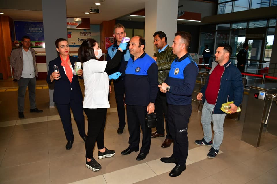 Öte yandan sağlık personeli Çukurova Belediye Başkanı Soner Çetin’in de ateşini ölçtü. Ateşi normal çıkan Soner Çetin el dezenfektesi yapmayı da ihmal etmedi.
