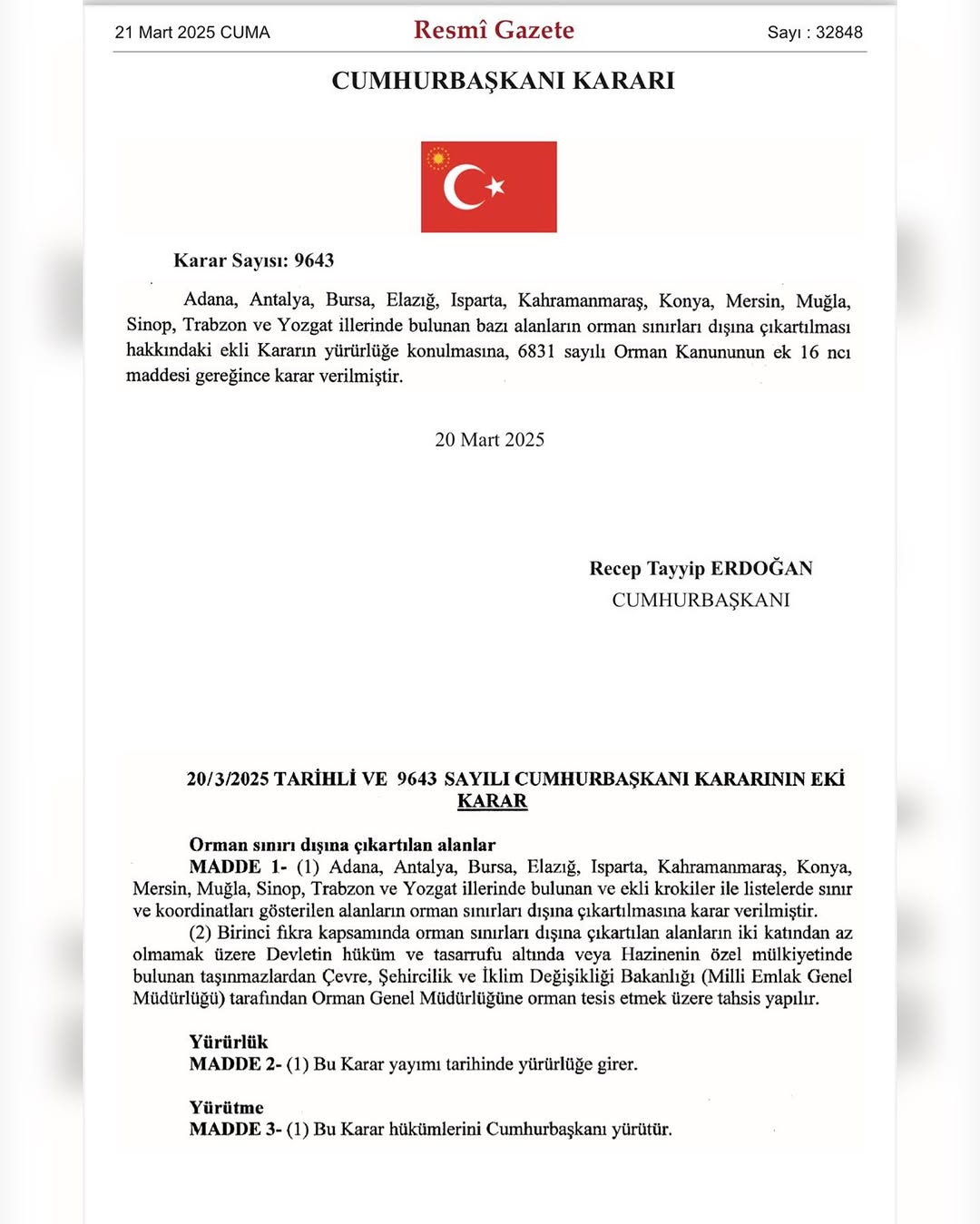 Cumhurbaşkanlığı kararnamesi yayınlandı. Kararnameye göre Pozantı'da TOKİ'nin önü açıldı. İşte Kararname;