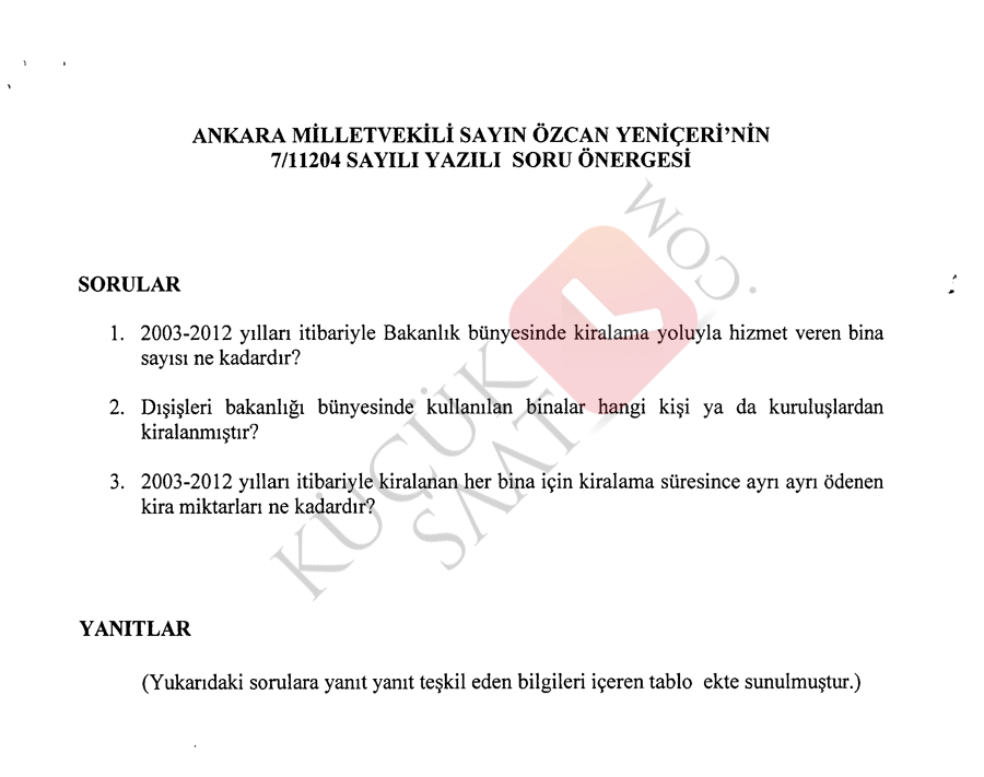 Yeniçeri, “Daha önceki Dış İşleri Bakanı Abdullah Gül’dü. Gül, Cumhurbaşkanı olduğunda oturduğu konuttan çıkmayınca Davutoğlu’na başka bir konut kiralandı. Ben Davutoğlu’na bir yıl boyunca soru önergesi verdim. “Nasıl sindiriyor? Garip gureba, fakir fukara” diyerek Davutoğlu’na tepki gösterdi.
