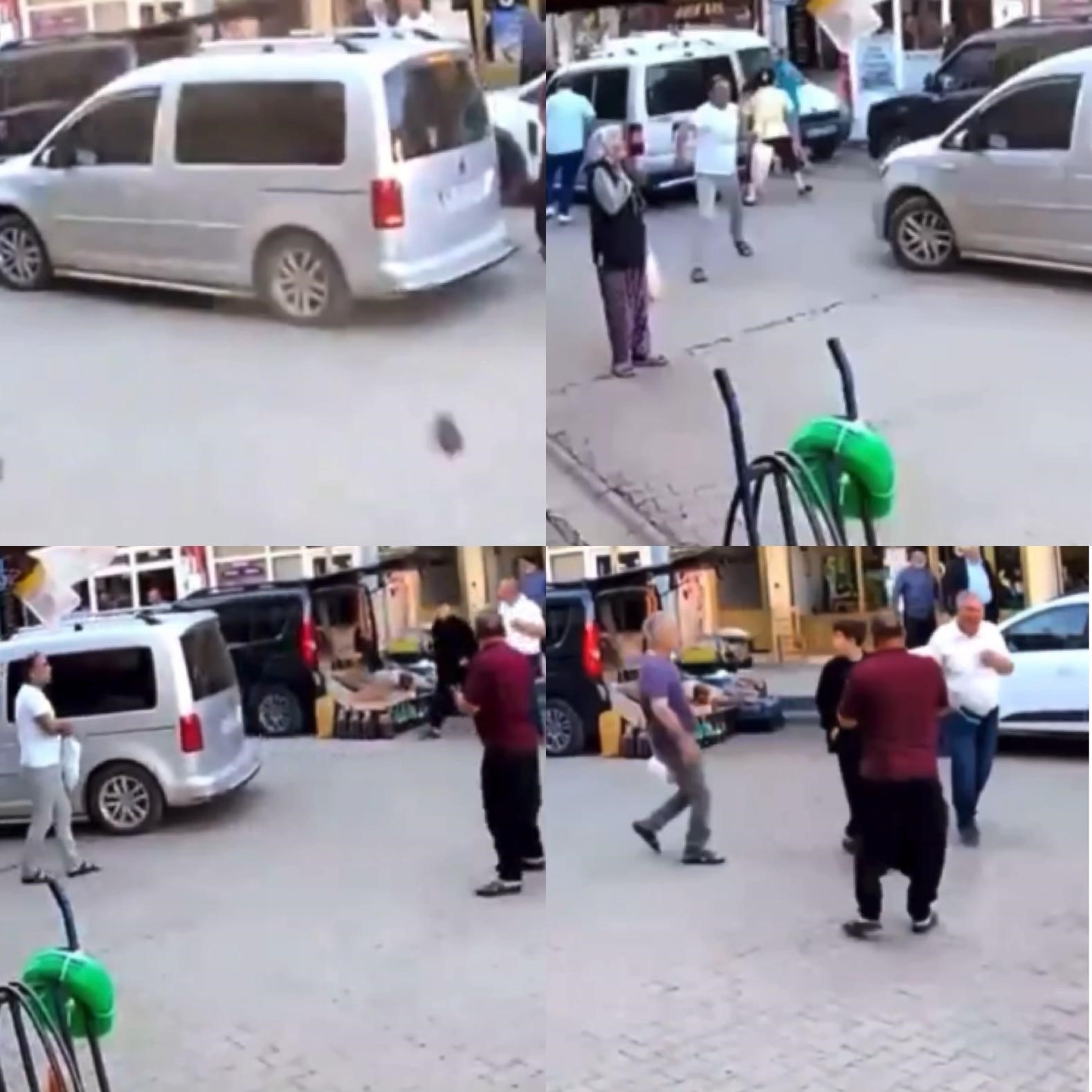 Görüntülerde, sallantının yanı sıra bir tuğlanın düşmesi ve yola çıkan insanların anlık duraksayıp ardından kaçışmaları yer aldı.