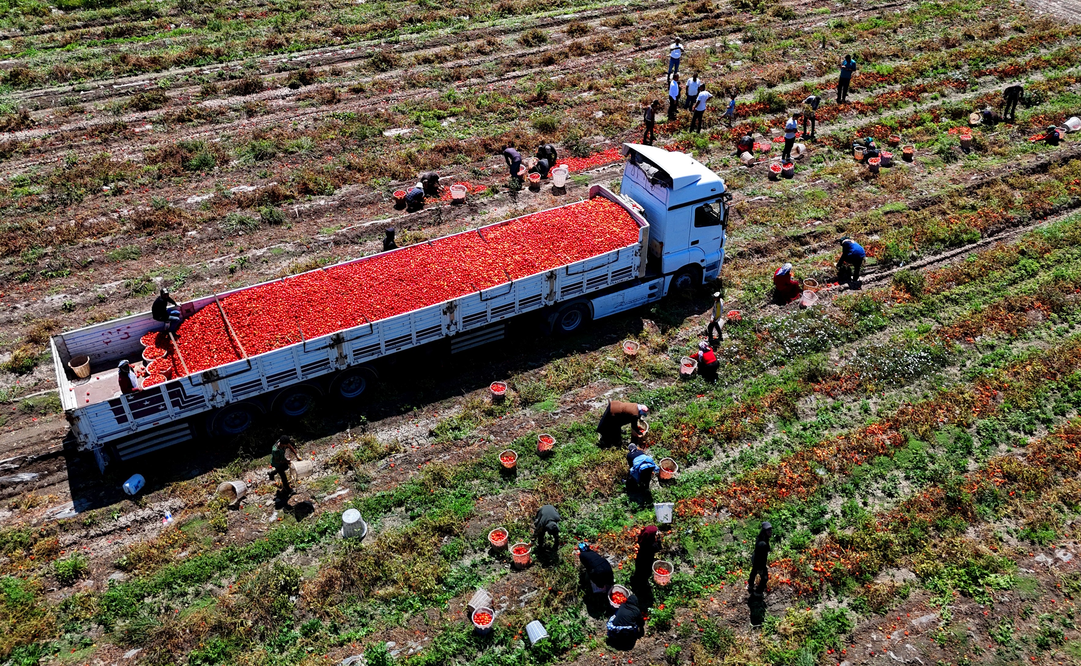Türkiye’nin sebze üretim merkezlerinden Adana’da yaklaşık 25 bin dönüm alanda ekimi yapılan domateste verim ortalama dönüm başına 5 ila 6 ton arasında değişirken hasatta yoğun şekilde devam ediyor. Kentte salçalık domatesinde tarlada fiyatlarının 3 TL'ye sofralık domateste ise 5 liraya kadar düşmesi dikkat çekerken üreticisini de üzdü. Yaz boyunca hasadın süreceği domateste üreticiler bir dönüm maliyetin yaklaşık 40 bin lira olduğunu bildirdi. Adana'da yaklaşık 150 bin ton domates rekoltesi beklendiği kaydedildi.