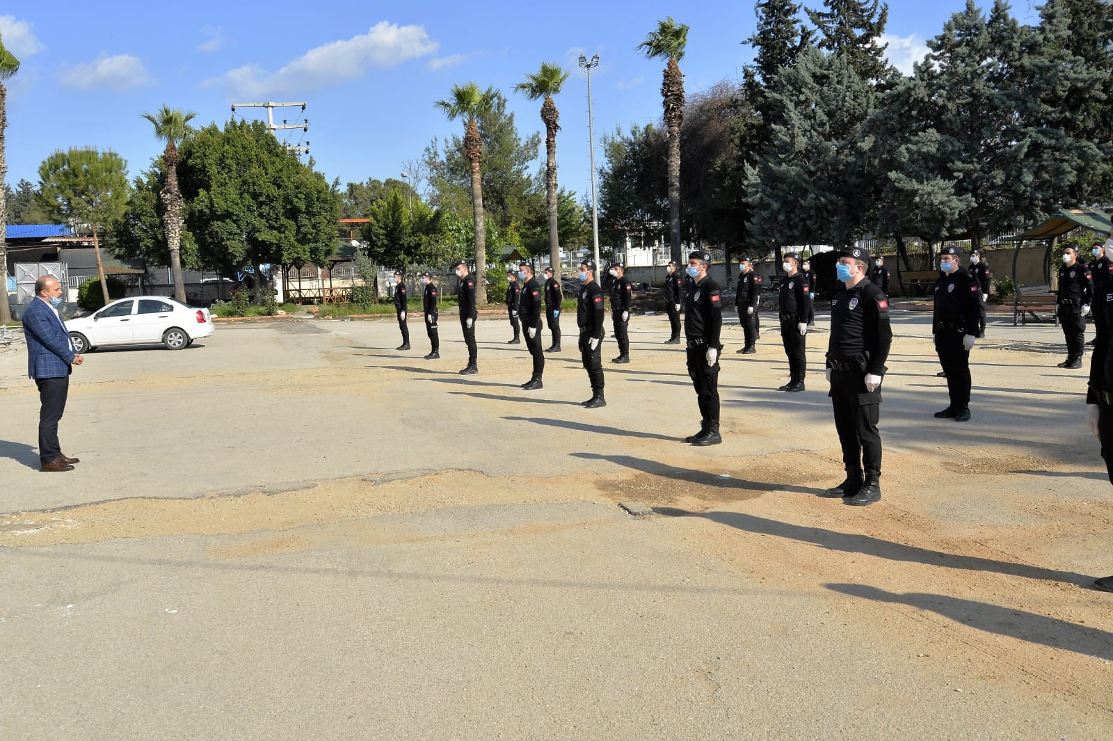 Aktaş, polis merkezi denetimlerinde de kendini karşılayan polislerle sosyal mesafeye dikkat etti.