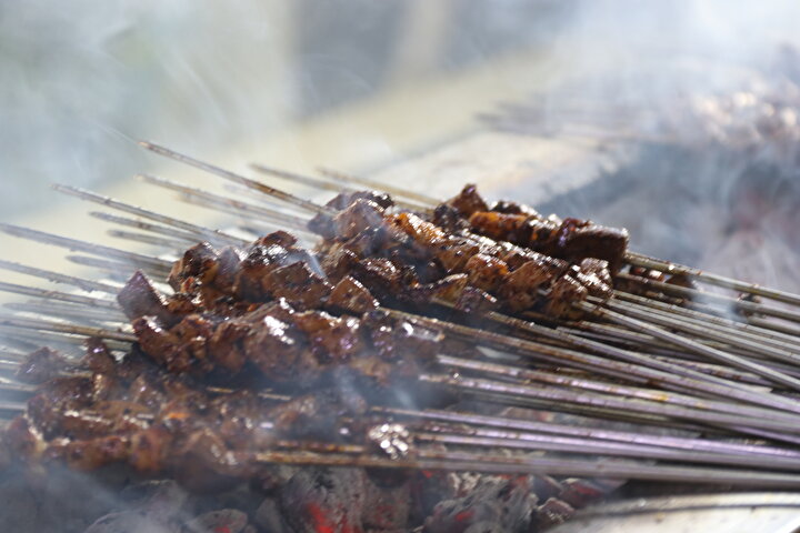 Diyarbakır'da kuzu ciğeri, kırmızı toz biber, tuz, kurutulmuş kekik ve dövülmüş sumakla marine edilerek, bir ciğer, bir kuyruk yağı, iki ciğer, bir kuyruk yağı ve bir ciğer şeklinde şişe dizilerek ateşte pişiriliyor.