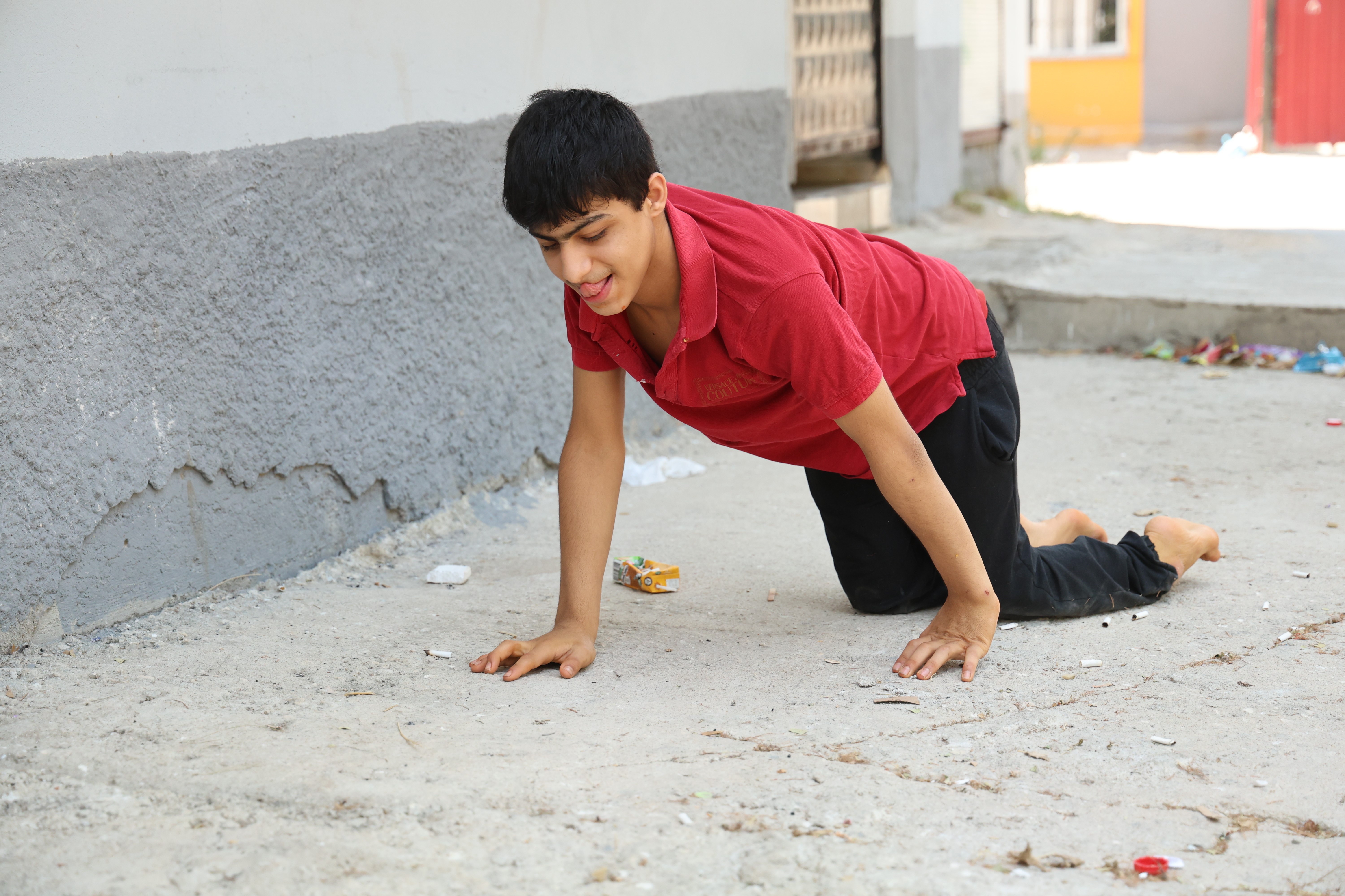 Enes'in tekerlekli sandalyesi çalındı şimdi emekleyerek geziyor