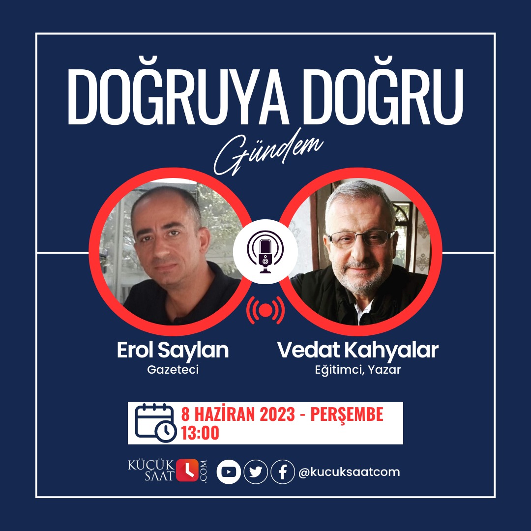 Her Salı ve Perşembe saat 13:00’te Küçüksaat TV’de Doğruya Doğru Gündem programında gerek Adana gerekse Türkiye gündemine dair konuların birbirinden değerli konuklarla işleneceği program kucuksaat.com sosyal medya hesaplarından canlı yayınlanacak.