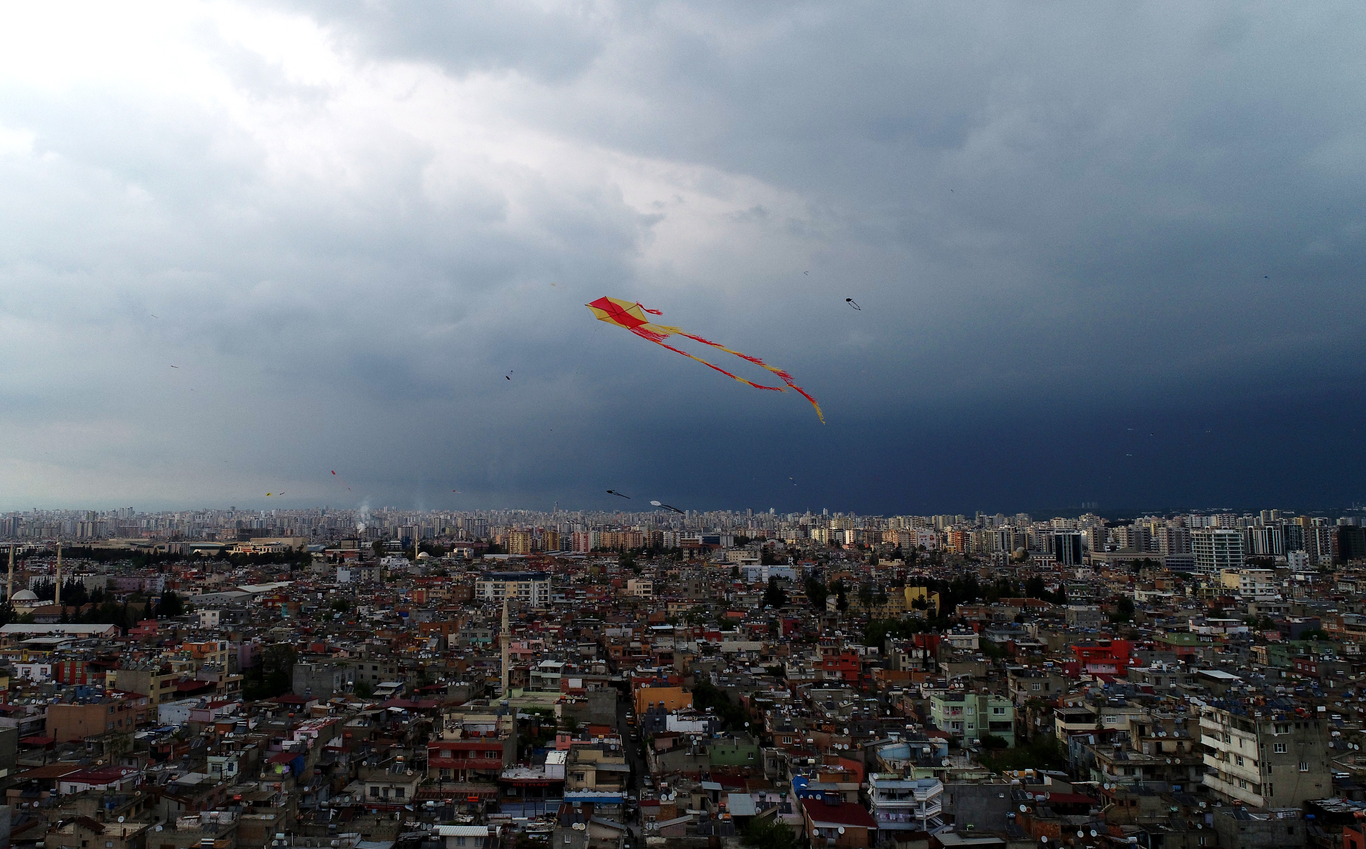 Korona virüs önlemleri kapsamında 31 ilde 2 günlük sokağa çıkma yasağı uygulamasının başlamasının ardından Adana’da vatandaşlar gökyüzünü uçurtmalar ile renklendirdi.