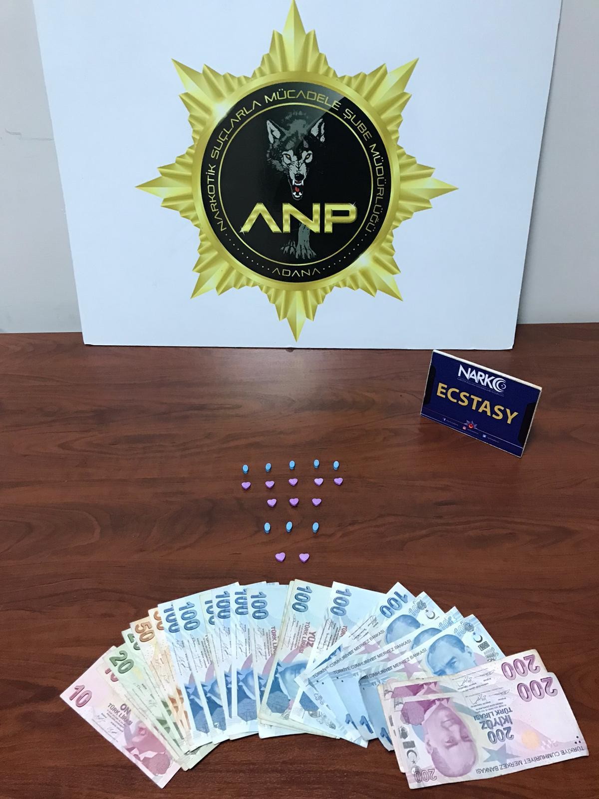 Polis evde yaptığı aramada ise iddiaya göre 20,36 gram bonzai, 57 pakette 113 gram esrar, uyuşturucu haplar ve uyuşturucu satışından elde ettiği tahmin edilen 3 bin 150 lira para ele geçirdi.