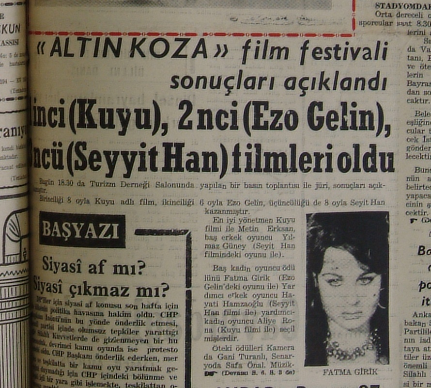 *Altın Koza kokteylinin ev sahibi yoktu. Vali ve Belediye Başkanı boşu boşuna kendilerini sanatçılarla tanıştıracak bir yetkili aradı. Neyse ki basın mensupları, sanatçılar ile Vali ve belediye Başkanını tanıştırdı.