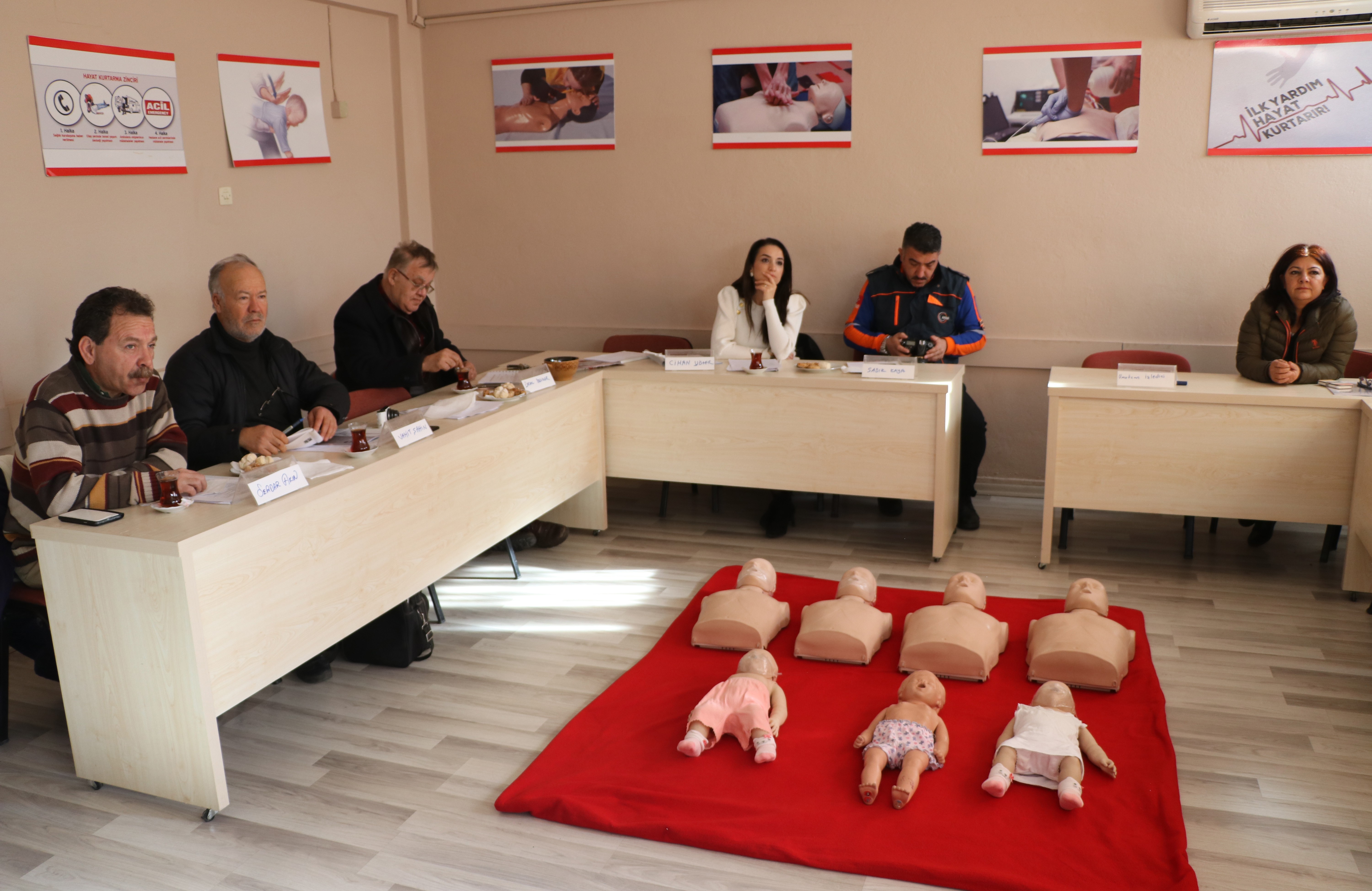 Fatih Sultan Mehmet Teknik Anadolu Lisesi Müdürü Gülay Sev’in ev sahipliğinde gerçekleştirilen eğitimde ilk yardımda temel eğitim, uygulamalı olarak verildi.