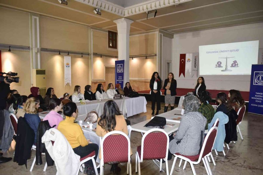 Adana Büyükşehir Belediyesi Sosyologu Elif Uras tarafından da "Toplumsal Cinsiyet Eşitliği ve Kadına Yönelik Şiddet Eğitimi" verildi. Eğitimde, toplumsal cinsiyet, toplumsal cinsiyet rolleri, toplumsal cinsiyete dayalı şiddet, kadına yönelik şiddet, şiddetin türleri, şiddetin etkileri ve başvuru mekanizmalarıyla ilgili bilgilendirme yapıldı. Düzenlenen eğitimler sonunda Adana Büyükşehir Belediyesi Kadın ve Aile Hizmetleri Dairesi Başkanı Ayten Dolançay, TMMOB Makina Mühendisleri Odası Adana Şube Başkanı Ümit Galip Uncu konuşmalarını yaparak eğitime katılanlara sertifikalarını verdi.