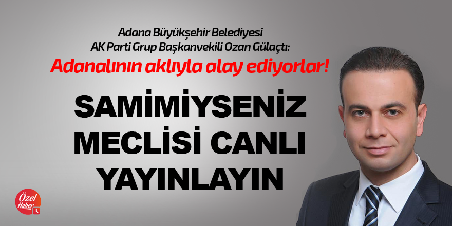 Gülaçtı açıklamasında, “Dün Temmuz ayı ilk oturumunu gerçekleştirdik. Oturumun başından sonuna kadar durumu takip ettim. Oturum canlı yayını gerçekleştirilmedi. Oturum sonunda teknik arkadaşlara canlı yayının neden yapılmadığını sordum, “Teknik bir sorun var, daha sonra sosyal medyaya servis edilecek” cevabını aldım ve dün gerçekleştirdiğimiz oturum sosyal medyaya yüklenmedi. Bugün meclis oturumunda yine sabırla bekledim, canlı yayın yapılacak mı diye bugün de canlı yayın hizmeti verilmedi. Dün ve bugün canlı yayınlarla Adanalıların meclisi izleme ve takip etme hakkına ket vurulduğu için konuyu gündeme getirdim. Sayın Karalar, canlı yayınlarla övünüyor. O kadar övünüyor ki Adana Büyükşehir Belediyesi bütçesinden çok büyük paralar harcayarak Adana’nın neredeyse tamamında “Adana tarihinde bir ilk, meclisi ekranlara taşıyoruz” reklamlarını yayınlattı. Meclisin canlı yayınlanmasını en çok isteyenler aslında Cumhur İttifakı olarak bizleriz. Vatandaşlarımız Adana Büyükşehir Belediyesi'nin nasıl yönetildiğini görsün istiyoruz. Sayın Karalar şeffaflıktan bahsediyor. 5 yıl Seyhan’da başkanlık yaptı, Seyhan Belediye Meclisi şeffaf değil miydi?” dedi.