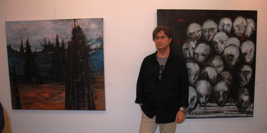 ÇÜ Eğitim Fakültesi Öğretim Görevlisi Hakan Demir, resimlerinin genellikle göç, sürgün, mülteciler üzerine olduğunu belirterek, “Benim çizdiğim resimler, aslında eskiden beri yaşadığımız coğrafyadaki bize yabancı olmayan sorunlardır. Bu resimler benim günlük yaşamımım bir parçası. Burada gördüğünüz kafalar bir trajedinin etkilenen kesimi olan insanlar. Kavram olarak insansı şekiller. Diğer resim ise insansız bölgedir. Medyadan etkilendiğimiz, bir anda karşılaştığımız görüntülerdir. Harabe olmuş, yıkılmış, gerçekten insansız hale gelmiş, bu imgelerde elektrik direkleri, petrol tesisleri var. Bölgeyi anlatıyor. Anlatmak istediğim mesele, onlarca yıldır bizim dışımızda uygulanan politikaların sonucu, bu hale gelmesidir. İnsanların, çevrenin etkilenmesi, milyonların göç etmek, yer değiştirmek zorunda kalması hepimizin derdidir. Buralarda normal bir yaşam sürmüyor. Bu resimlerin dolayısıyla dekoratif bir yanı da yok açıkçası” dedi.