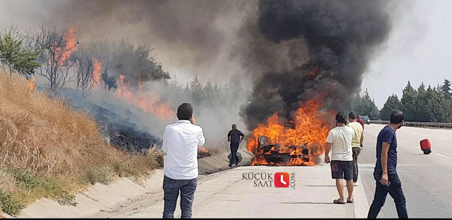 Emniyet şeridinde yanan araçtan sıçrayan alevlerin otoyol kenarında bulunan kurumuş otlara sıçraması faciaya davet çıkardı. Olay yerine kısa sürede gelen itfaiye ekipleri otomobilde ve otoyol kenarında bulunan yangını söndürdü.