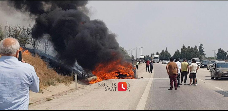Adana'da Osmaniye-Mersin otoyolunda Organize Sanayi Bölgesi civarında bir otomobil alev topuna döndü.