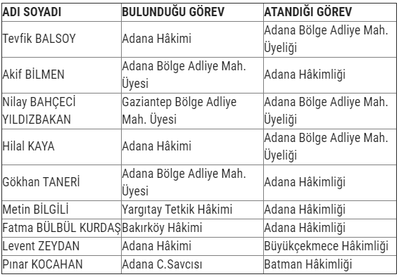Hakimler ve Savcılar Kurulu’nun (HSK) yayınladığı mazeret kararnamesi ile 256 adli yargı hakim ve savcısı ile 51 idari yargı hakim ve savcısının görev yeri değişti. Kararnamesi ile boş bulunan Bursa Cumhuriyet Başsavcılığı’na, Bursa Cumhuriyet Başsavcı Vekili Gökhan Şen getirildi.