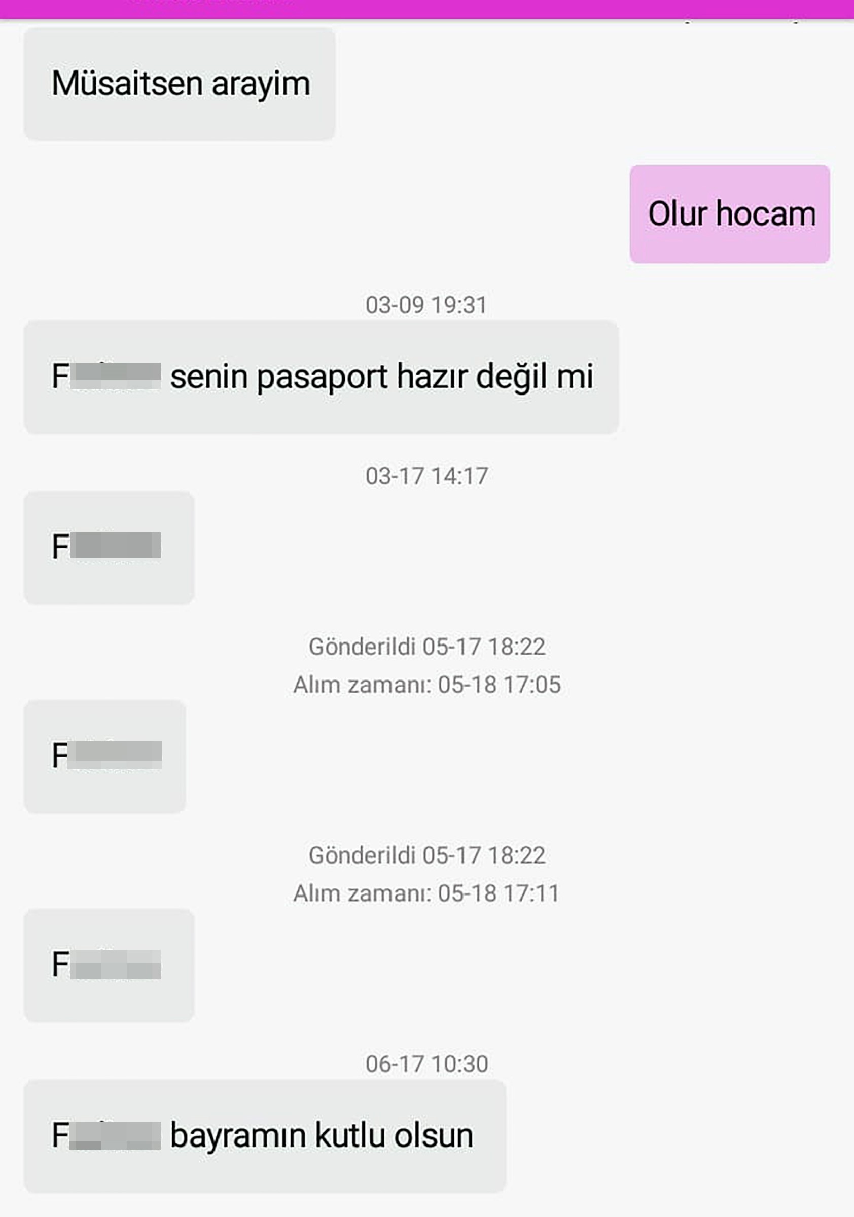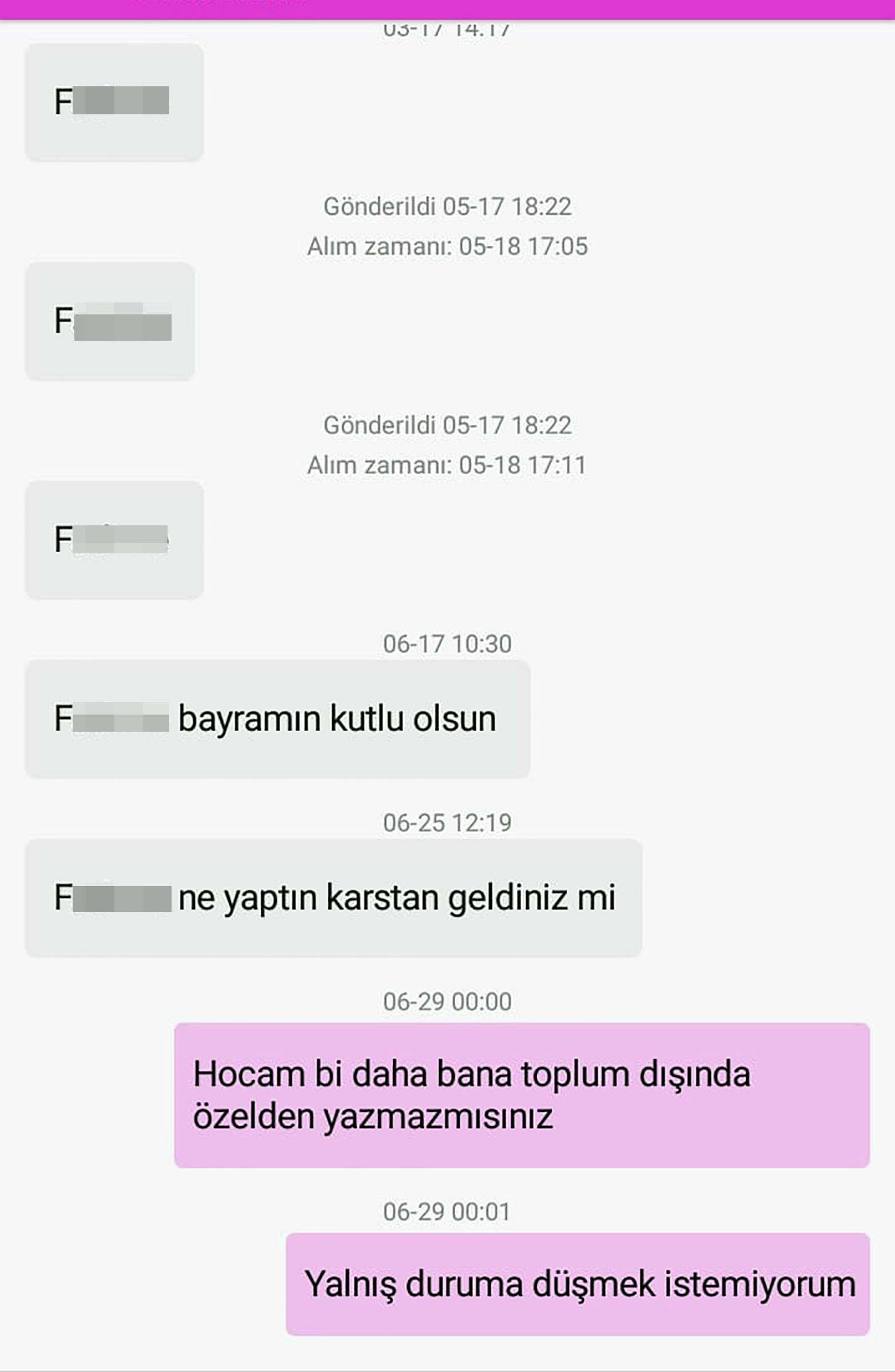 F.A, ”Mesaj atıyordu, cevap vermiyordum tekrar tekrar atıp arıyordu. Hafızlık kursundaki hocamı durumu anlattım. Hocamda oranın müftüsünün eşiyle konuştu. Müftü ve eşi bana sus dedi, kesinlikle kimseye anlatma olayın üzerini örtelim dediler. Sen yanlış anlamışsındır dediler, yapmaz öyle bir şey dediler. Yanlış anlaşılacak bir şey yok her şey ortadaydı. Diyanete de savcılığı da dilekçe verdik. Dilekçemiz reddedilip takipsizlik kararı verildi. Ben olay yaşanırken çıkartıp kamerayı çekemezdim. Ben o gün tecavüze uğramadım diye bu olay kapatıldı” sözlerine yer verdi.