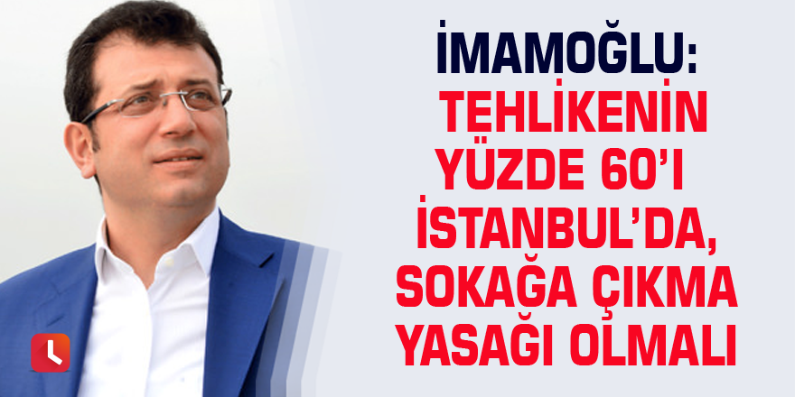 İstanbul Büyükşehir Belediye Başkanı Ekrem İmamoğlu, Covid-19 salgınıyla ilgili “Tehlikenin yüzde 60’ı İstanbul’da. Türkiye için olmasa bile İstanbul için sokağa çıkma yasağı ilan edilmeli” dedi.