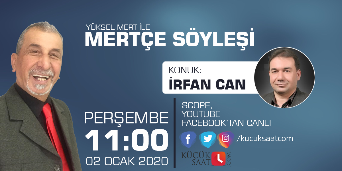 Kucuksaat.com yazarı İrfan Can, 2 Ocak Perşembe saat 11'de Yüksel Mert'in hazırlayıp sunduğu Mertçe Söyleşi'nin konuğu olacak.