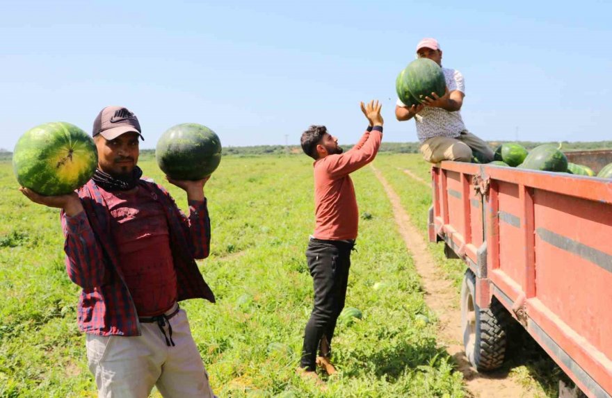 İşçilerden Mehmet Gökkan, "Günlük 40-45 derece sıcakta çalışıyoruz. İşçiler de zorlanıyor, günlük 150 ton karpuz yüklüyorlar. İnşallah 1 hafta sonra hasat iyice hızlanır ve 45-50 gün burada iş olur. Sıcaklık etkiliyor, çok sıcak. Ekmek parası ama çalışmak zorundayız" dedi.