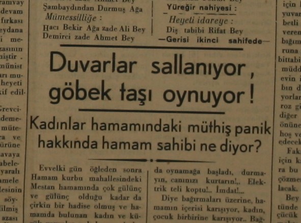 Önce bir şaşkınlık ve her kes korku ile birbirine bakıyor, ardında bağrışma devam ediyor. Aynı kadının sesi tekrar hamamda çınlıyor: