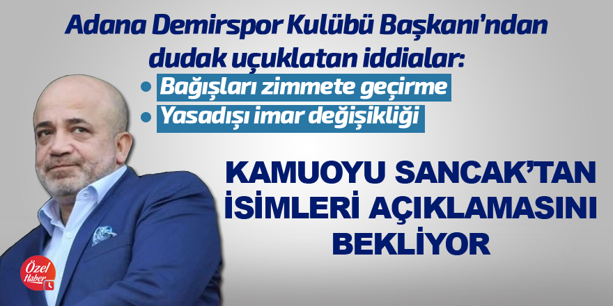Adana Demirspor Kulübü Başkanı Murat Sancak, twitter hesabından yaptığı paylaşımlarla Adana gündemini sarsacak açıklamalarda bulundu. Adama Demirspor odaklı birçok konuya değinen Sancak, özellikle yolsuzluk ve imar vurgununa dikkat çekti.