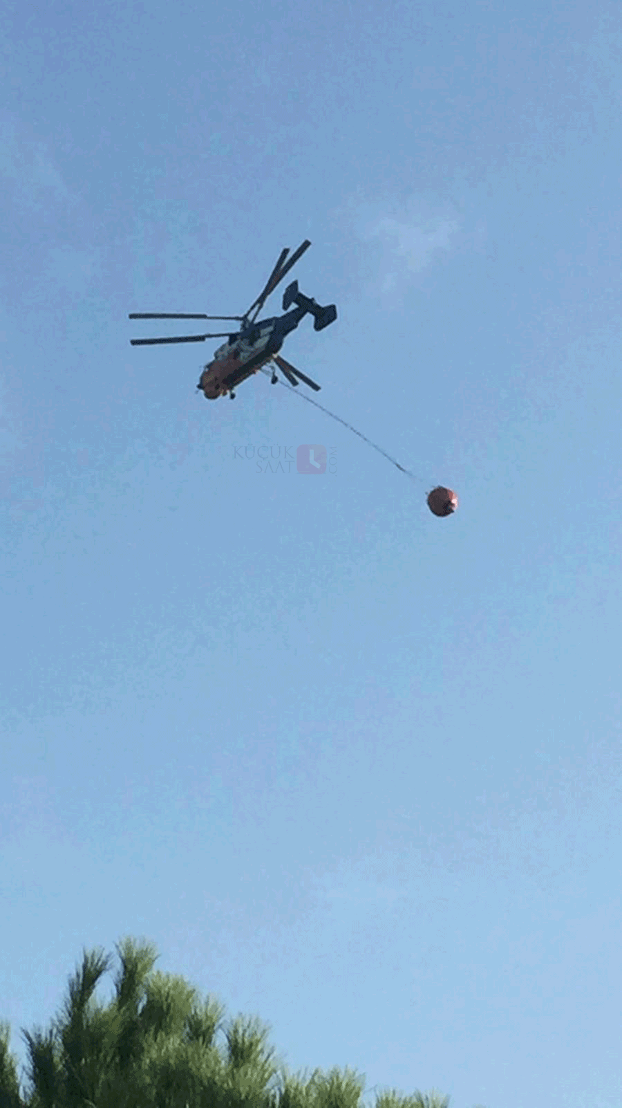 Büyüyen yangına itfaiyenin karadan müdahalesi yetersiz kalması sonucunda havadan helikopterle destek geldi.