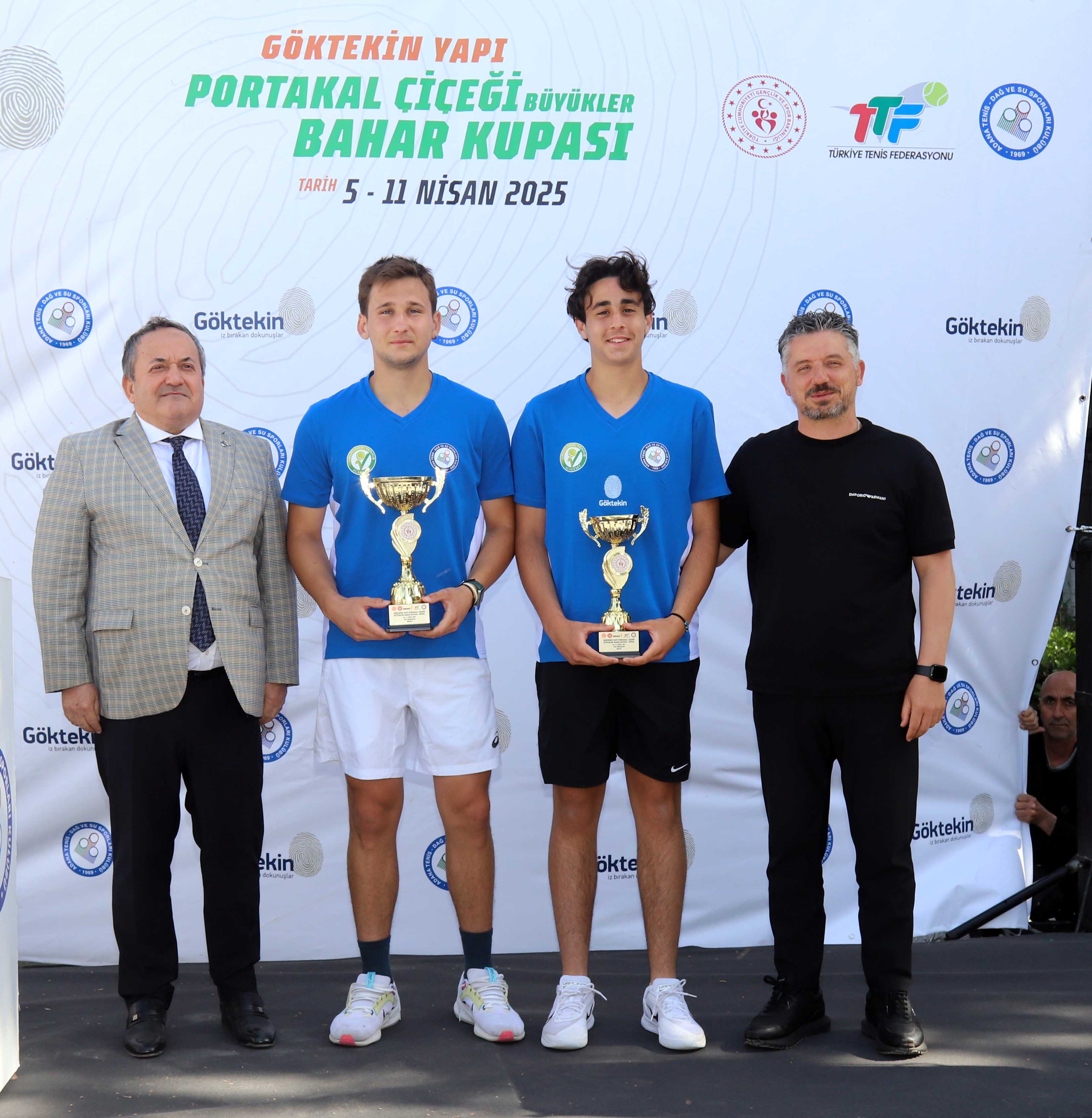 Adana’da tenis şöleni yaşatan müsabakalar sonunda şampiyon ve finalistlere kupaları Seyhan Kaymakamı Ekrem İnci, Çukurova Kaymakamı Hüseyin Tekin, Göktekin Yapı Yönetim Kurulu Başkanı Serdar Göktekin ve Tenis İl Temsilcisi Abdullah Taş tarafından verildi. Türk tenisine hizmet etmeyi sürdüreceklerini söyleyen Adana Tenis Dağ ve Su Sporları Kulübü Başkanı Ali Refah Keskin, Türk tenisine, ‘Marka Kent Adana’ tanıtım çalışmalarına katkısı nedeniyle turnuva sponsoru Göktekin Yapı Yönetim Kurulu Başkanı Serdar Göktekin’e plaket vererek, teşekkür etti. Göktekin Yapı Yönetim Kurulu Başkanı Serdar Göktekin de, ATDSK ile yıllardır yan yana olduklarına dikkat çekerek, “Göktekin Yapı olarak bizler sadece binalar yapmayı değil, hayal kuran, gayret eden, pes etmeyen sporcuların yanında olmayı da çok önemsiyoruz. Biz inanıyoruz ki, skor sadece kortlarda değil hayatta da insanı büyütür, geliştirir ve biliyorum ki kortlarda kazanılan en büyük şey kupa değil, kendine güvenen, hayal kuran, pes etmeyen bir karakter. İşte bu yüzden gençler hayal edin, çok çalışın, pes etmeyin. Göktekin Yapı olarak her zaman yanınızdayız” dedi.