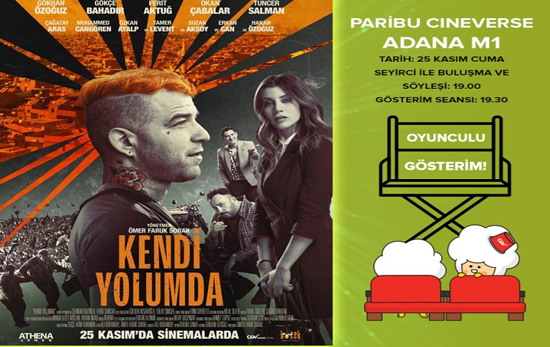 25 Kasım Cuma, Paribu Cineverse M1 Adana AVM'de saat 19'da Gökhan Özoğuz, Gökçe Bahadır, Ferit Aktuğ ve Okan Çabalar seyirci ile buluşacak. Film gösterimi ise saat 19.30'da başlayacak.