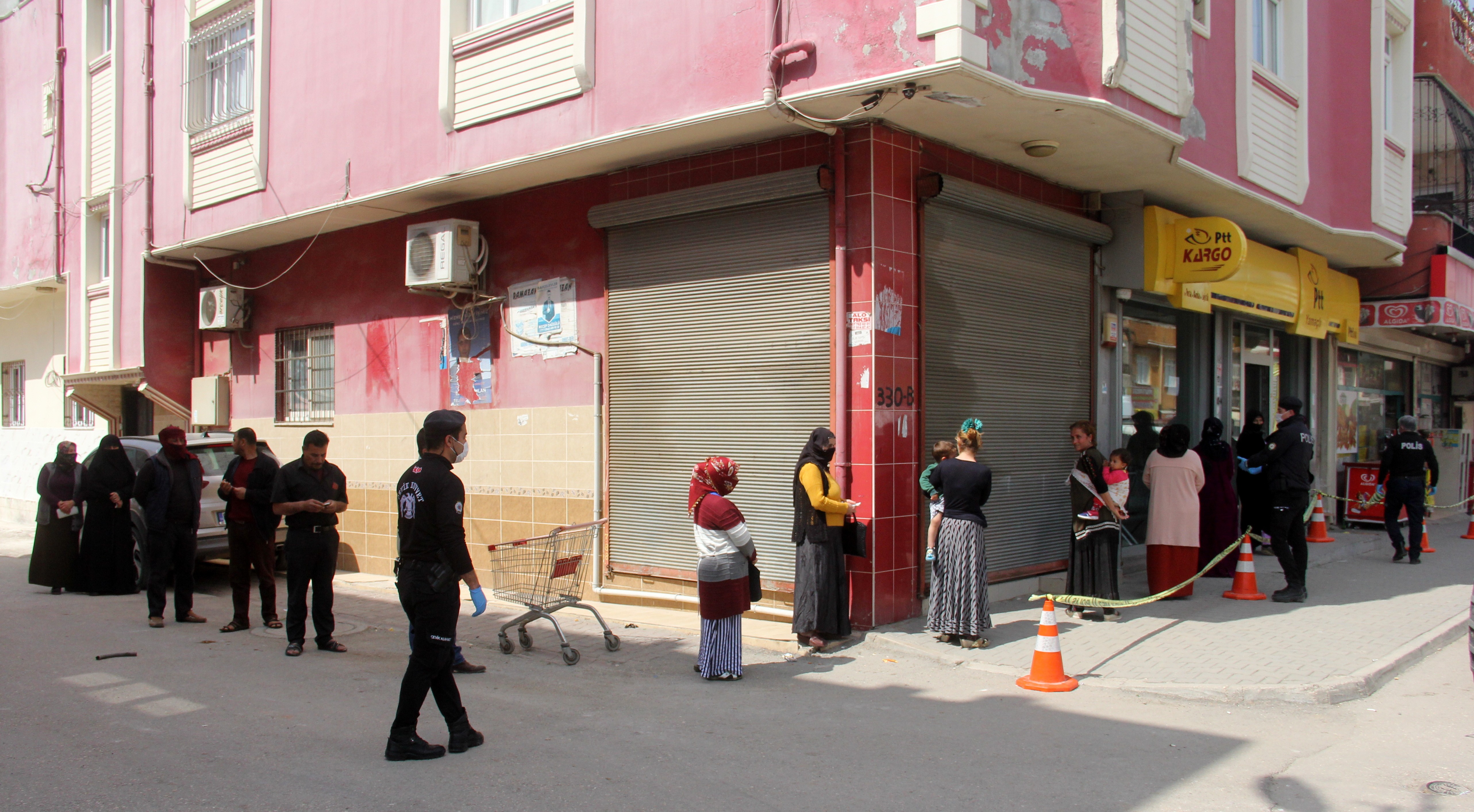 Polis vatandaş yoğunluğu olacağından önceden önlemini alıp PTT önünde güvenlik şeridi çekti. Vatandaş yoğunlunun artması üzerine de virüs nedeniyle bir metrelik sosyal mesafenin korunması için sık sık megafonla anons etti.