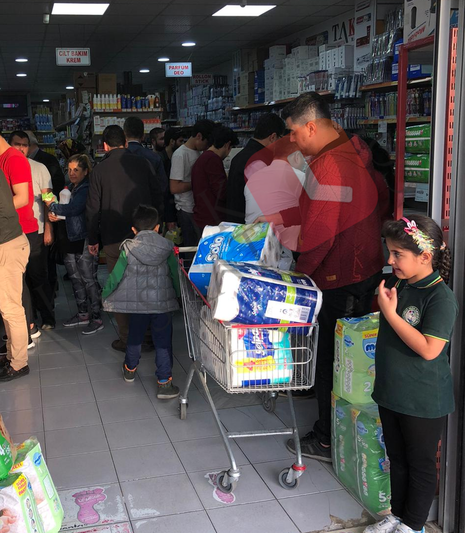 Koronavirüsün Türkiye'de açıklanması sonrasında Adanalılar evlerine alışveriş yapmak için uzun kuyruklar oluşturdu