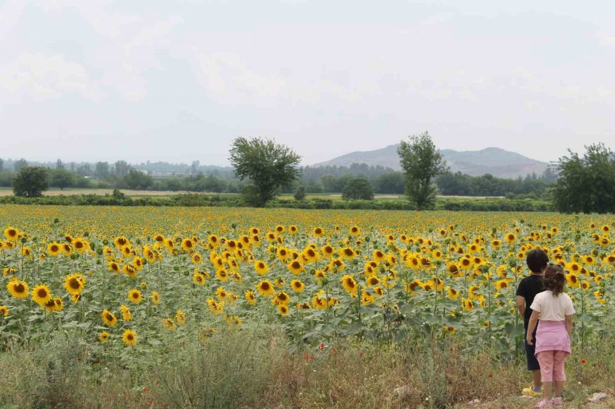 Havaların ısınması ve yaz sıcaklarının kendini hissettirmesi ile başlayan doğada ki görsel şölen devam ediyor. Baharla gelen yeşilin tonları sıcaklarla oluşan buğdayın sarısının ardından ayçiçek tarlalarındaki çiçeklerin açması ve yamaçları süsleyen zakkumların pembe çiçekleri bölgeyi açık hava fotoğraf stüdyosuna dönüştü. Zakkumları ve ayçiçek tarlalarını görenler ise aileler ise bol bol fotoğraf çektirdi.