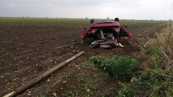 Mehmet Akbaş (62) idaresindeki plakası alınamayan otomobil sürücüsünün direksiyon hakimiyetini kaybetmesi sonucu yoldan çıkarak tarlaya uçtu.