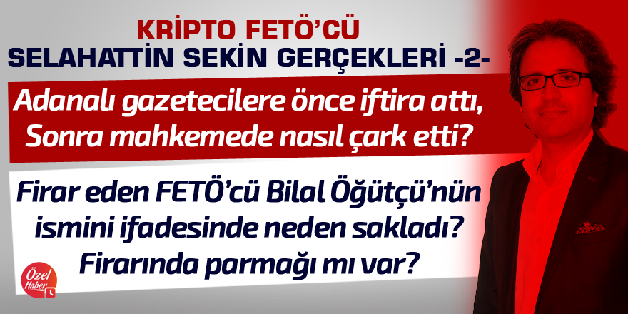 Dikkatlice okuduğunuz zaman kendisinin ismini verdiği gazeteciler tarafından tehdit edildiğini utanmadan söylüyor. İşin ilginç yanı bu beyanları verirken, yakın dostu ve program arkadaşı, FETÖ yurtdışı gezilerinde yol arkadaşı olan Zaman Gazetesi Adana Temsilcisi Bilal Öğütçü’nün ismini zikretmiyor. Başka bir ilginç nokta ise emniyet müdürlüğünden hiç kimse Bilal Öğütçü’yü aklına getirmiyor. Acaba o gün müptezel Selahattin Sekin’in ifadesini alan polis memurları şuan neredeler? Tabi ki bunu araştırmak emniyet müdürlüğü ve savcıların işi…