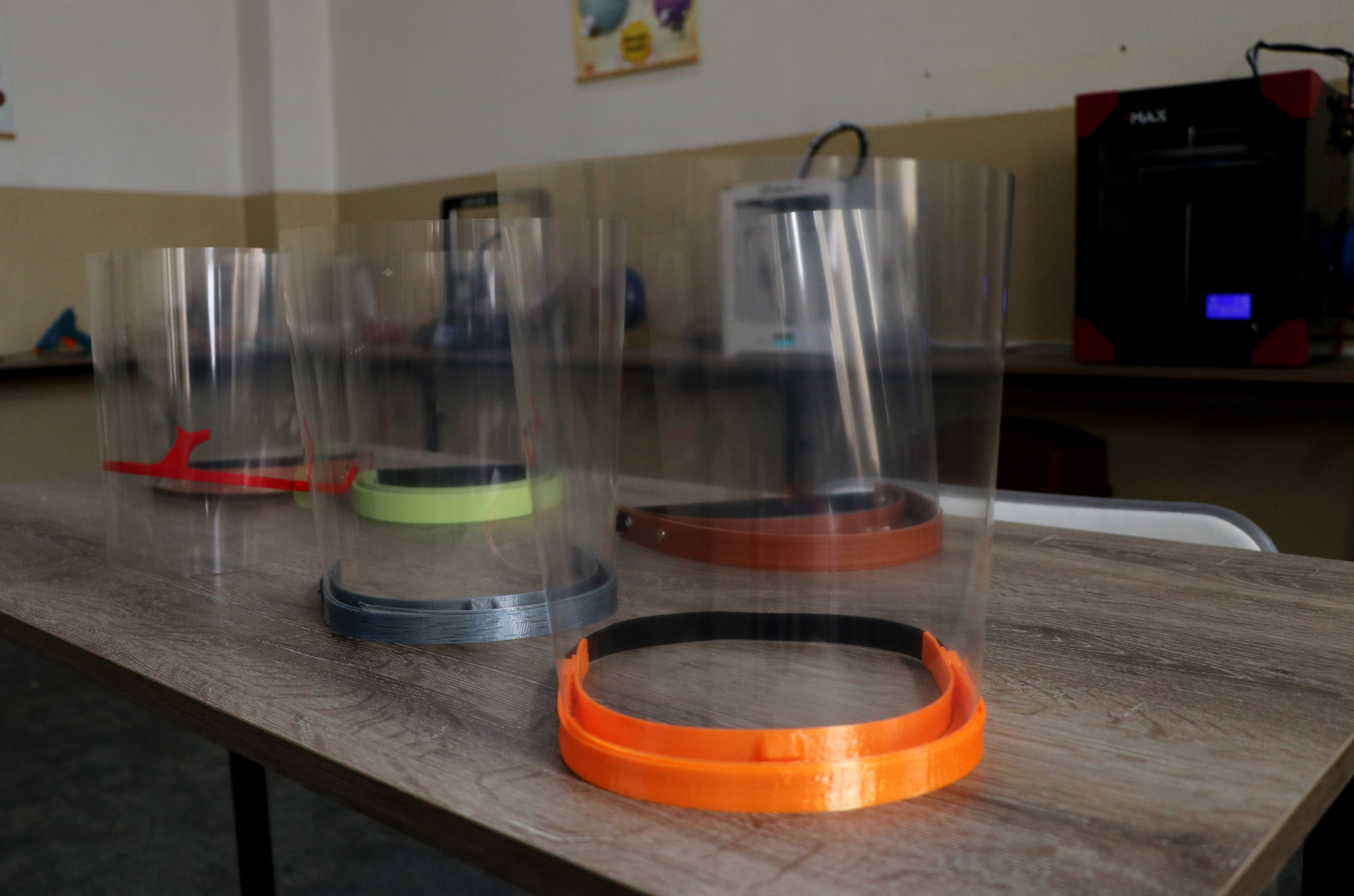 Adana Kurttepe Şehit Ali Öztaş Mesleki ve Teknik Anadolu Lisesinde gönüllü 12 öğretmen, okulun 3D yazıcı laboratuvarını 7 gün 24 saat tam kapasite çalıştırarak, sağlık çalışanlarının ihtiyacı olan siperlik üretiyor.