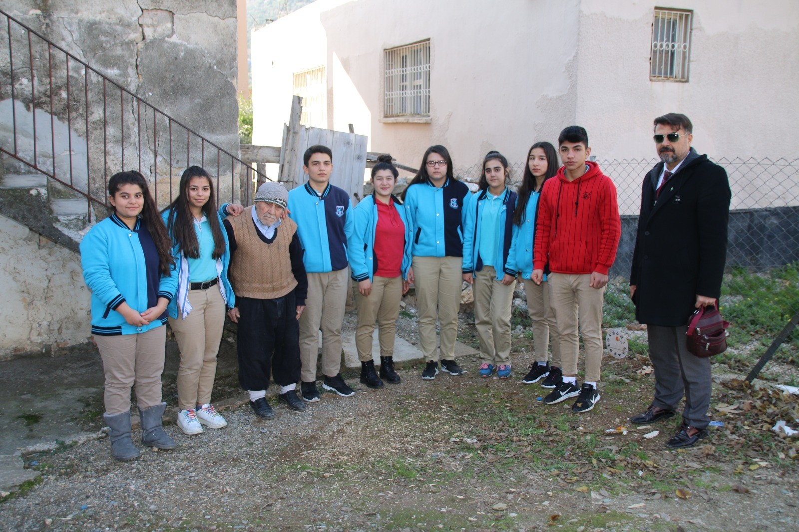 Liseli öğrenciler yaşlı adamın eli kolu oldu