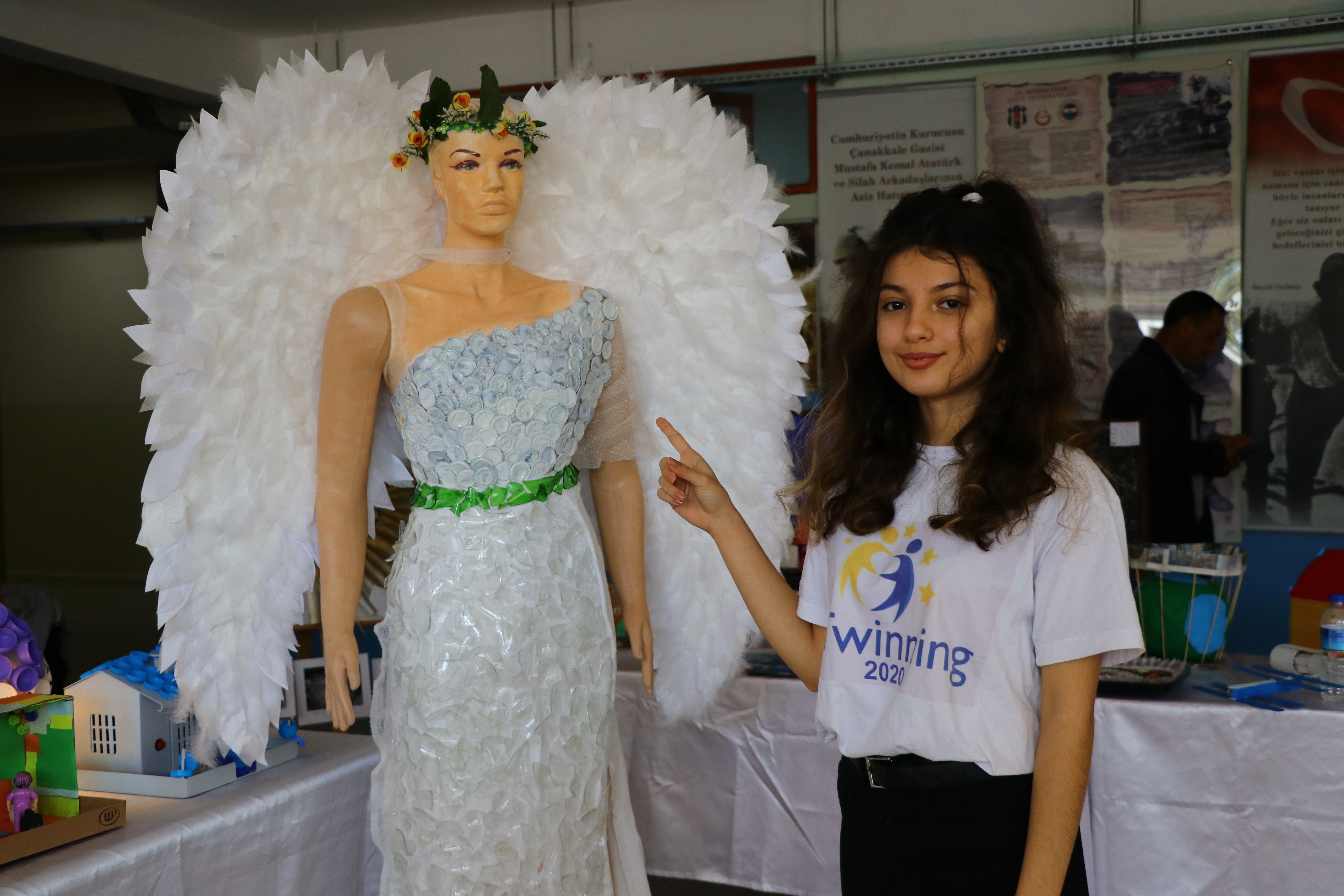 Okul müdürü Abdussamet Emiroğulları ve Görsel Sanatlar Öğretmeni Ayşegül Yıldırım'ın katkılarıyla bu eserler geçtiğimiz gün okulun içerisinde açılan ‘Atıklarım Değerleniyor’ isimli sergiyle öğrencilerin beğenisine sunuldu.