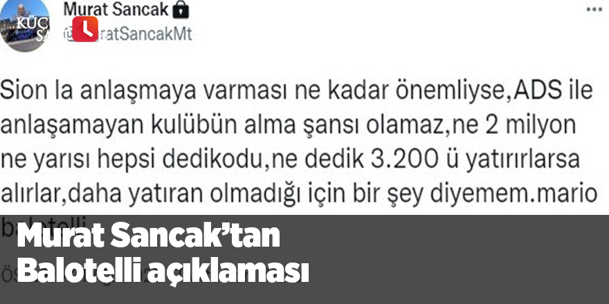 NTV Spor'un haberine göre; Balotelli Sion ile anlaşmaya vardı. 32 yaşındaki yıldız gün içinde sağlık kontrolünden geçerek resmi sözleşmeye imza atacak. İsviçre ekibi, Balotelli için Mavi Şimşekler’e 2 milyon Euro ödeyecek.